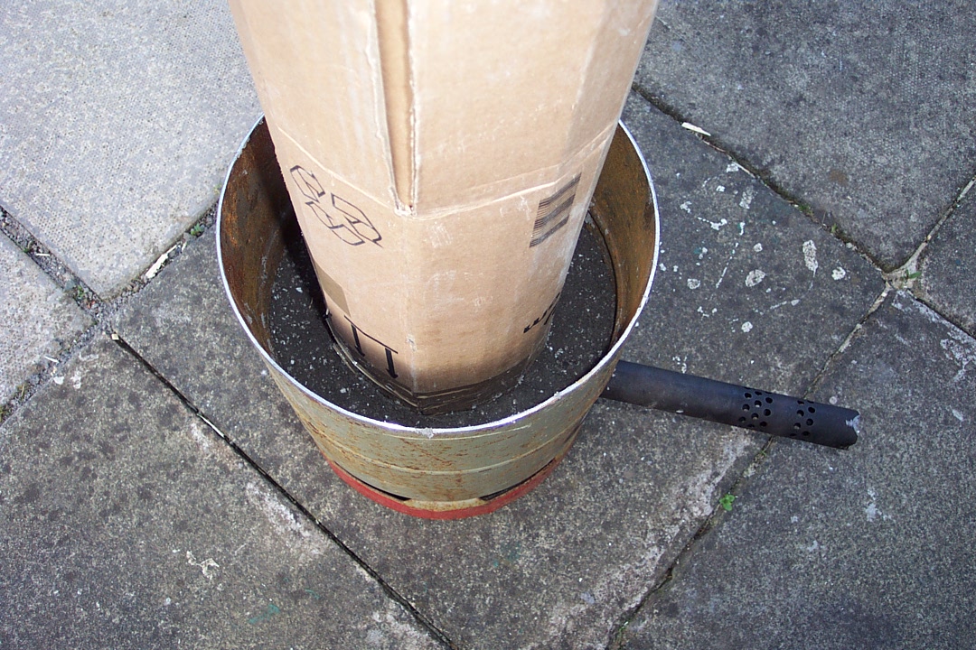 Insert the main form & ram the mixture around the form using a suitable piece of wood.
