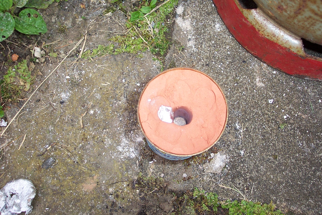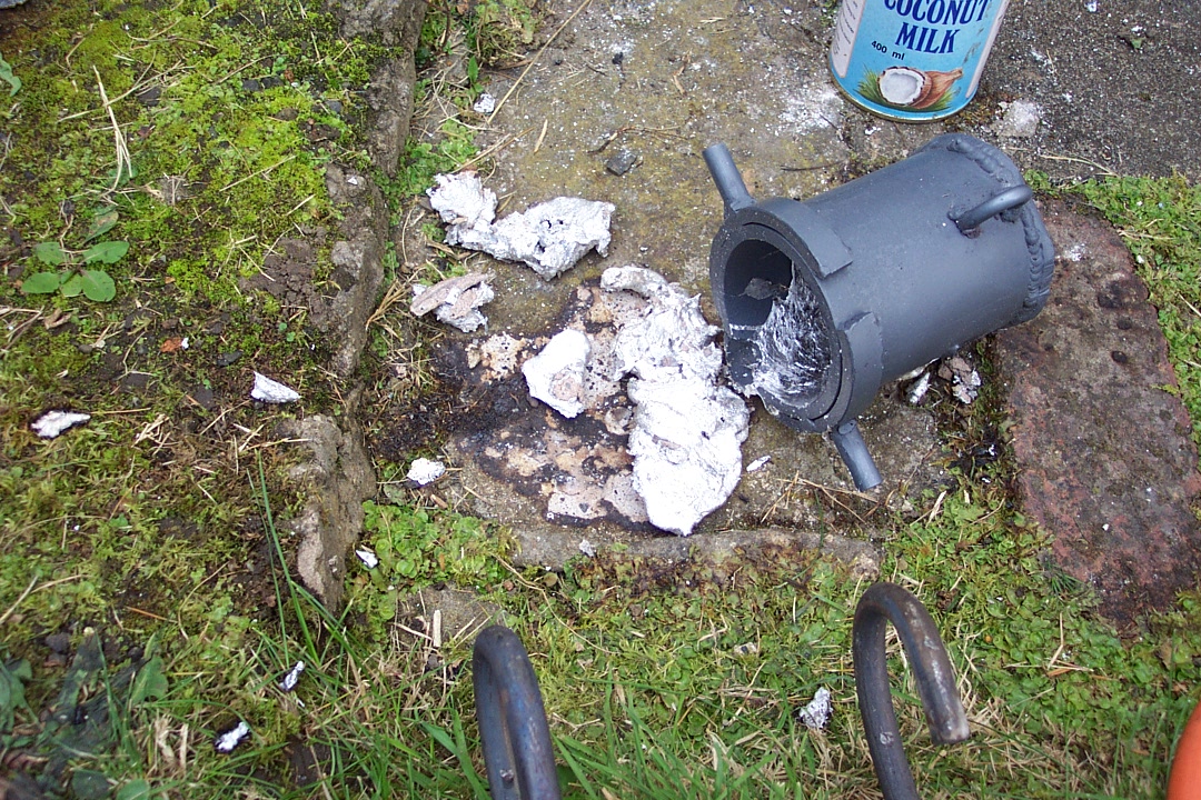 Sadly, due to my excitement, I dropped the crucible onto the concrete below.